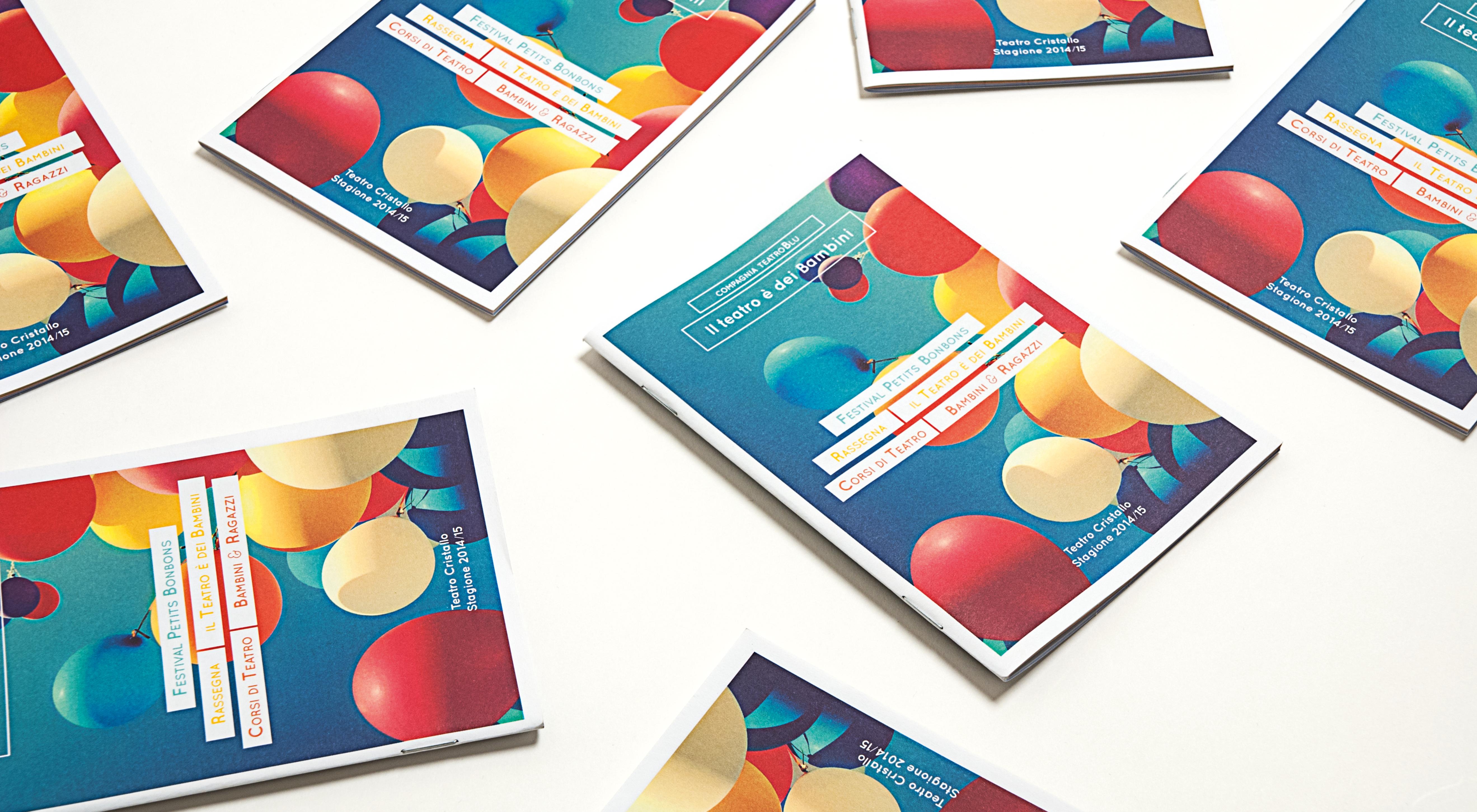 For the 2014/15 theatrical season – The theatre is for children – I conceived the visual image, the catalogue design and the playbills for events. The imprint is fresh and lively, the sections are full of colours to stimulate the little one and guide among the many proposals the company offers.